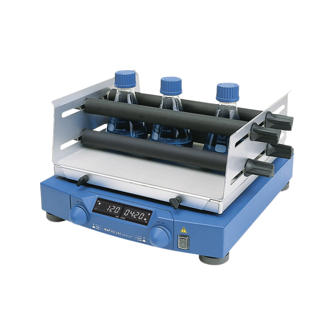 Der IKA HS 260 control NOL ist ein kompakter, digitaler Laborschüttler mit horizontaler Hin- und Herbewegung, konzipiert für Anwendungen, die eine “liegende” Durchmischung erfordern – von der sanften Extraktion in Scheidetrichtern bis hin zur kräftigen Resuspendierung in Kulturflaschen. Das Kürzel “NOL” steht hierbei für maximale Flexibilität: Das Gerät wird ohne festen Aufsatz geliefert, um es mittels des umfangreichen Zubehörprogramms exakt auf spezifische Gefäßgeometrien (Bechergläser, Erlenmeyerkolben oder Scheidetrichter) zu konfigurieren. Mit einer zulässigen Schüttelmenge von 7,5 kg bewältigt der HS 260 control auch schwerere Aufbauten souverän.