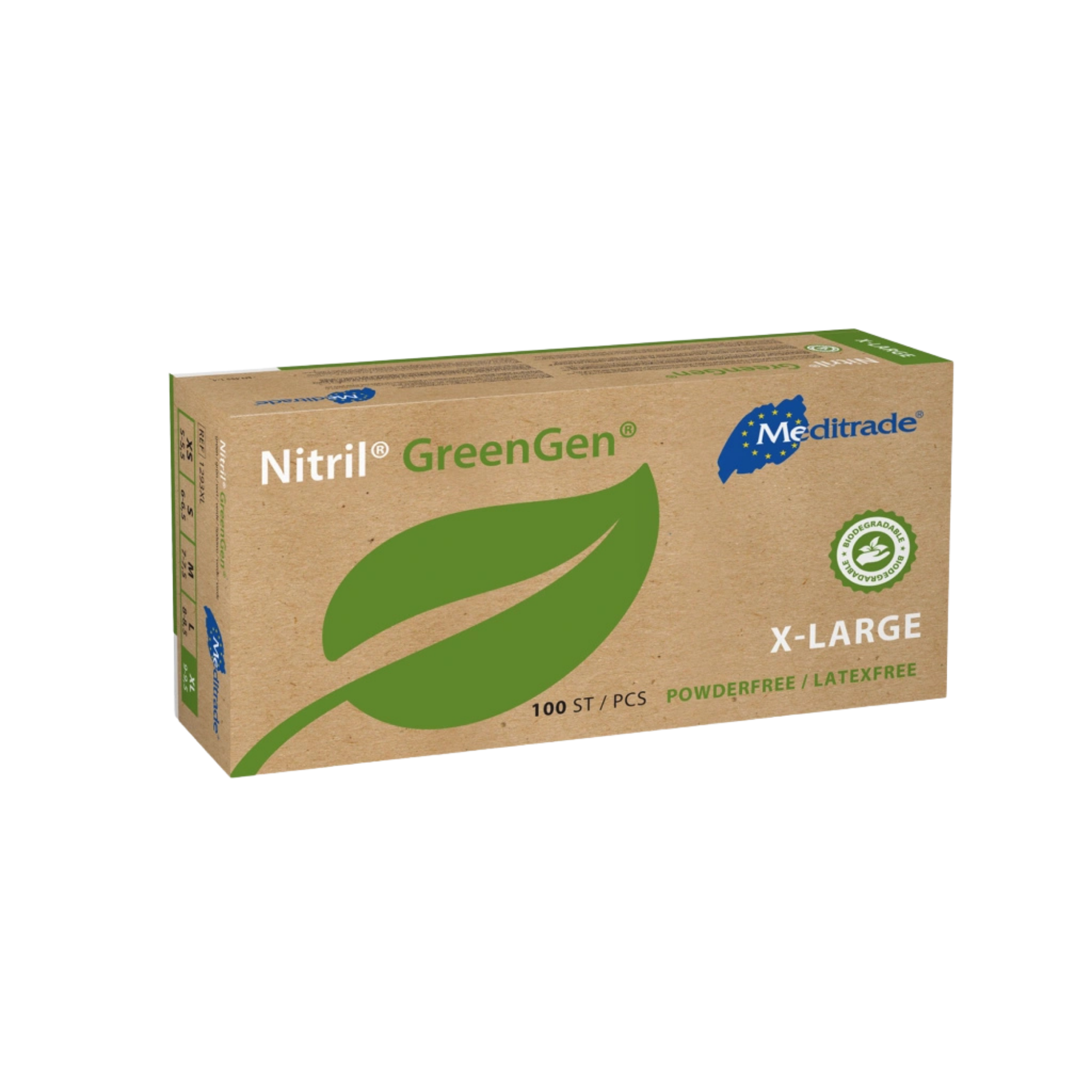 • 1 x Karton Meditrade Nitril GreenGen in der gewählten Größe (Inhalt: 10 Boxen à 100 Stück)