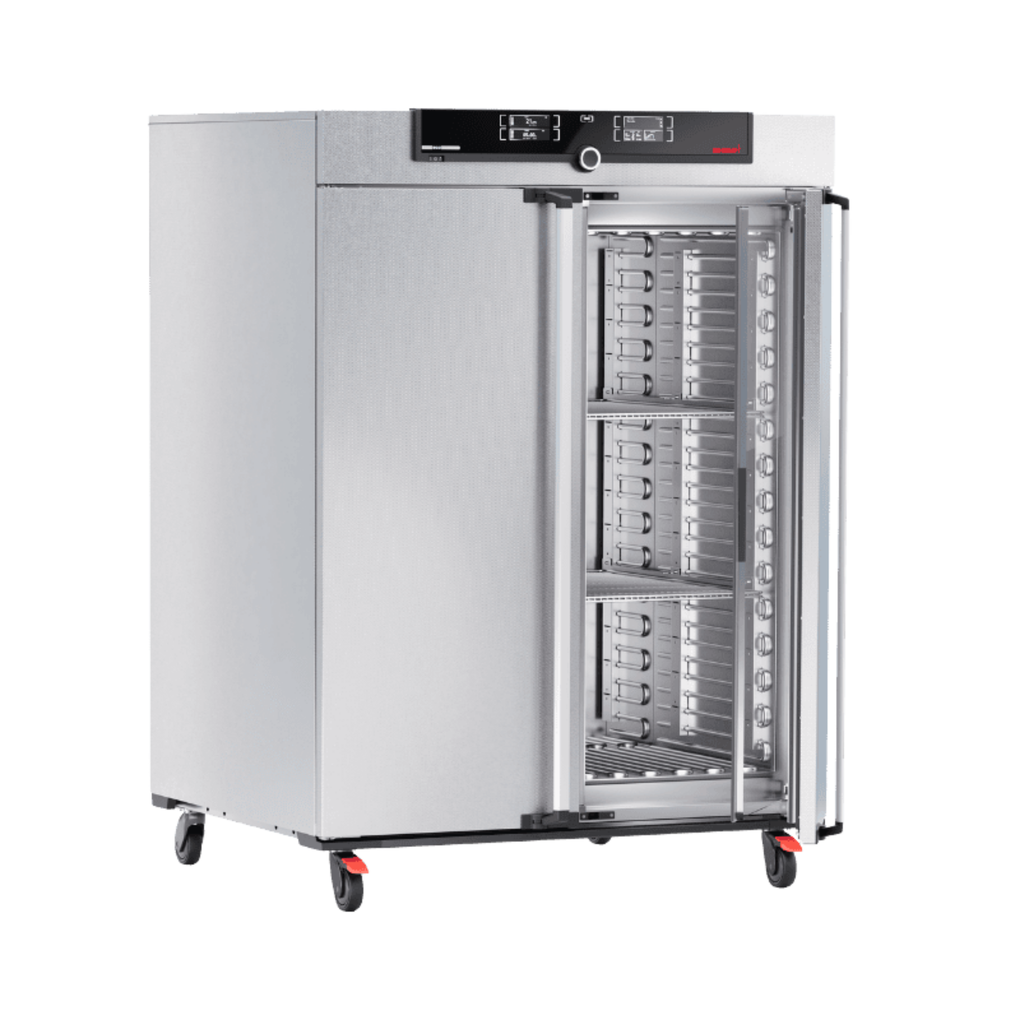 Mit einem voll nutzbaren Innenraumvolumen von 1060 Litern ist der IPP1060ecoplus das ideale Großgerät für Labore mit extrem hohem Probendurchsatz oder für die simultane Einlagerung von voluminösen Testchargen. Trotz seiner enormen Kapazität arbeitet der Peltier-Inkubator nahezu lautlos und absolut vibrationsarm, da kein schwerer Kompressor mechanische Erschütterungen auf die Probengefäße überträgt. Dies ist für sensible biologische Kultivierungen ein unschätzbarer analytischer Vorteil. Um das thermische Mikroklima im Innenraum bei der visuellen Probeninspektion nicht zu zerstören, ist das großvolumige Gerät mit doppelten Innenglastüren hinter den Außentüren ausgestattet.