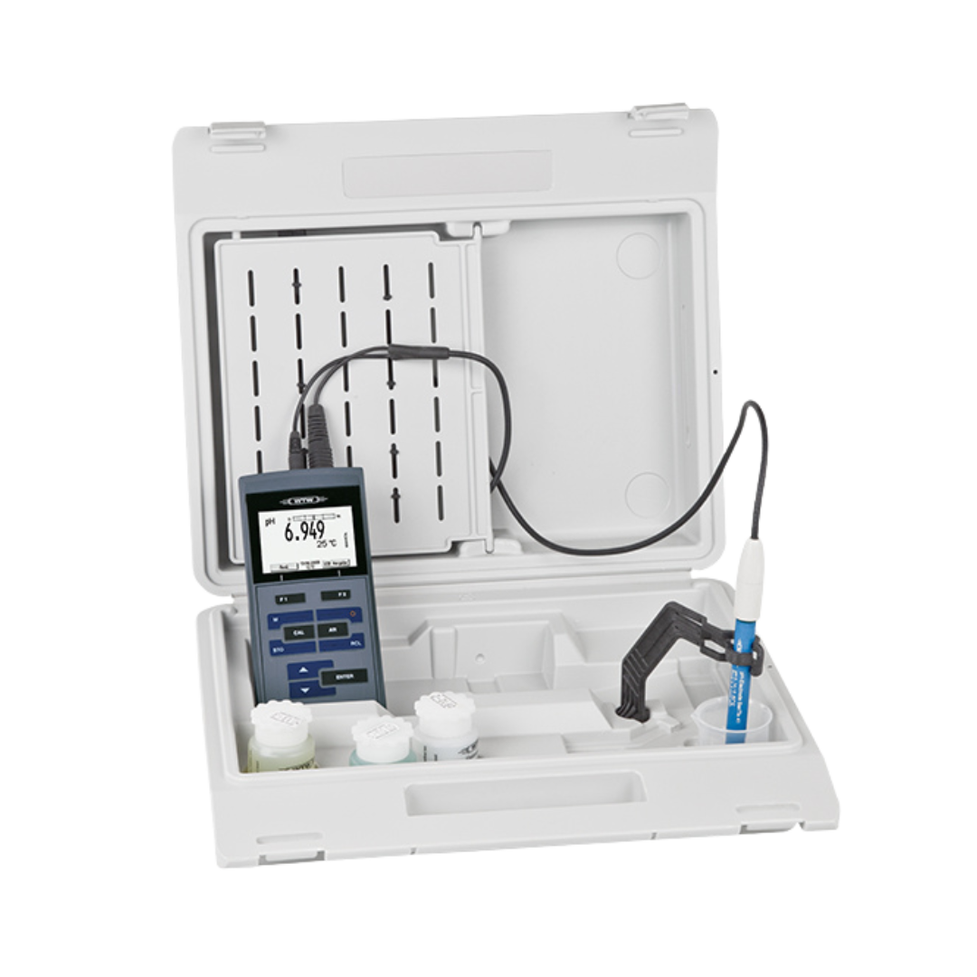 Das Gerät bietet eine 5-Punkt-Kalibrierung und die bewährte CMC-Funktion (Continuous Measurement Control). Diese visualisiert auf dem hintergrundbeleuchteten Grafikdisplay, ob sich der aktuelle Messwert noch innerhalb des kalibrierten Bereichs befindet, und warnt bei Abweichungen. Dies erhöht die Verlässlichkeit der Messwerte, insbesondere bei wechselnden Probenmatrizes.