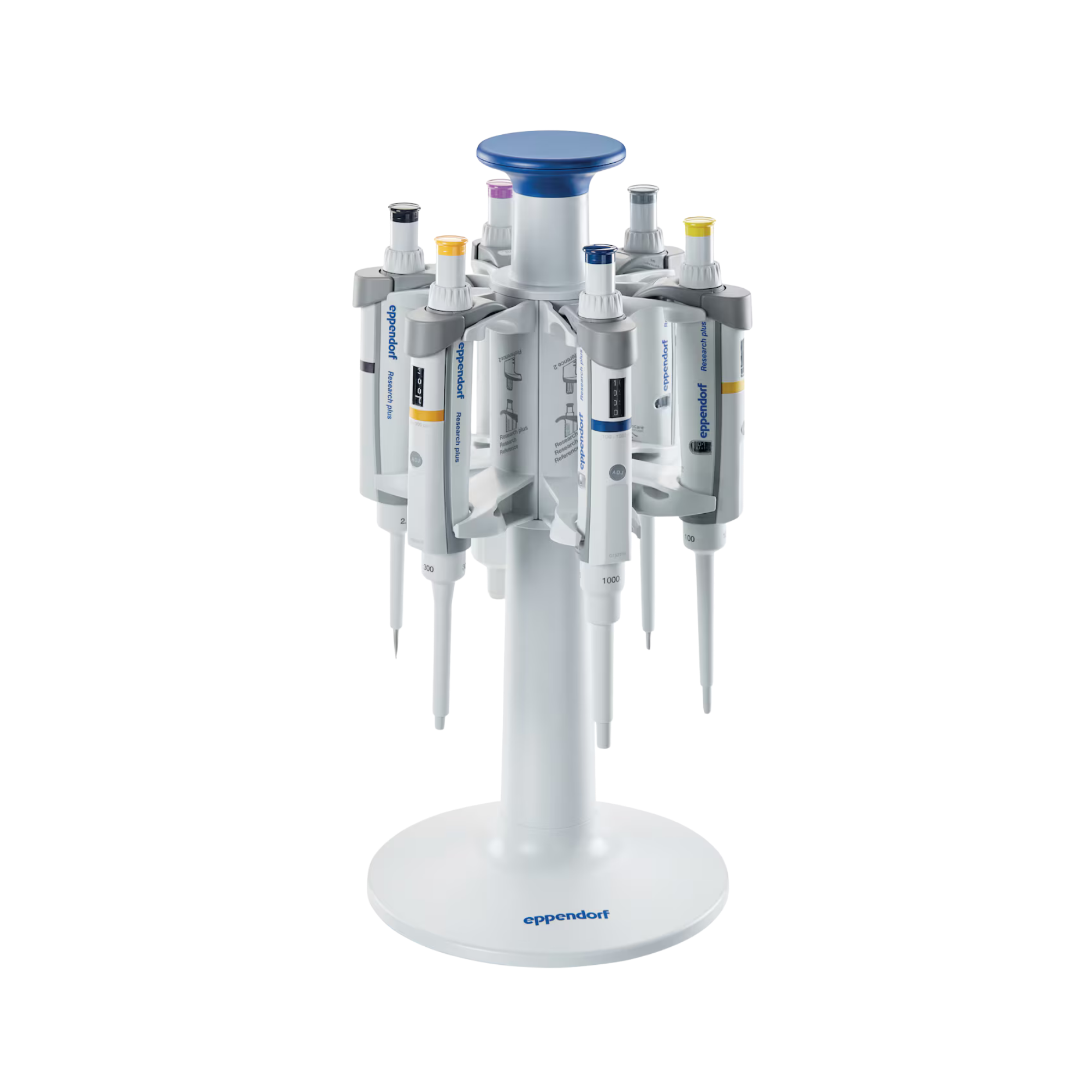 Das System ist speziell für die Aufnahme von Eppendorf-Pipetten konzipiert. Die Halterungen sind so geformt, dass die Pipetten sicher einrasten und nicht wackeln. Das Karussell ist kompatibel mit einer Vielzahl von mechanischen Eppendorf-Pipetten, darunter: