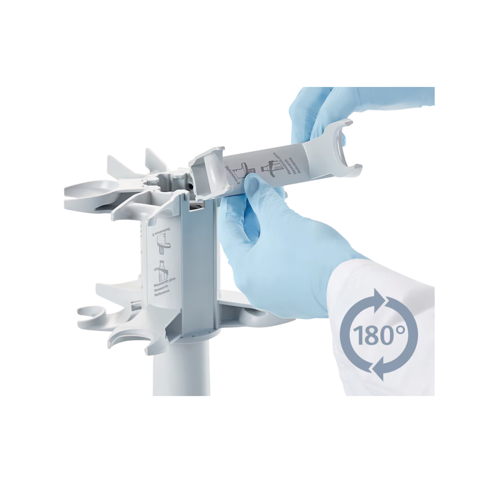 Dies macht den Ständer zur universellen Lösung, selbst wenn in Ihrem Labor verschiedene Generationen von Eppendorf-Pipetten parallel im Einsatz sind. Die Pipetten hängen sicher am Griffstück, was die Handhabung beim Entnehmen und Zurückhängen sehr intuitiv macht (“Grab-and-Go”).