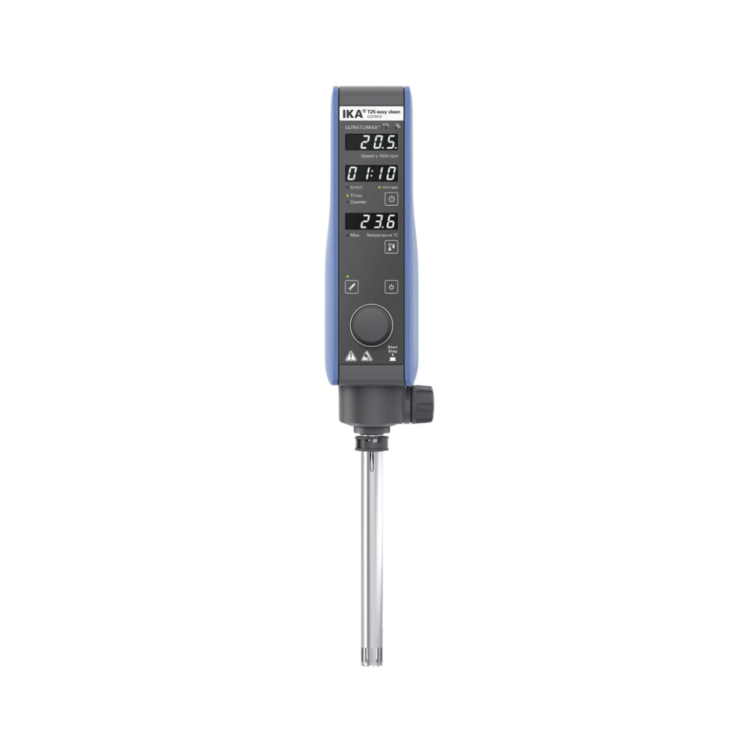 Der IKA T 25 easy clean control ULTRA-TURRAX ist ein Hochleistungs-Dispergiergerät, das neue Maßstäbe in Bezug auf Hygiene, Prozessüberwachung und Bedienerfreundlichkeit setzt. Sein namensgebendes “easy clean”-Design löst eines der häufigsten Probleme im Laboralltag: Die aufwendige Reinigung von Dispergierwerkzeugen. Durch einen speziellen Mechanismus lässt sich der Rotor einfach ausfahren, um das Werkzeug ohne Demontage zu spülen. Dies minimiert Kontaminationsrisiken und spart wertvolle Arbeitszeit, besonders bei häufigen Probenwechseln in der medizinischen Diagnostik oder Kosmetikentwicklung.