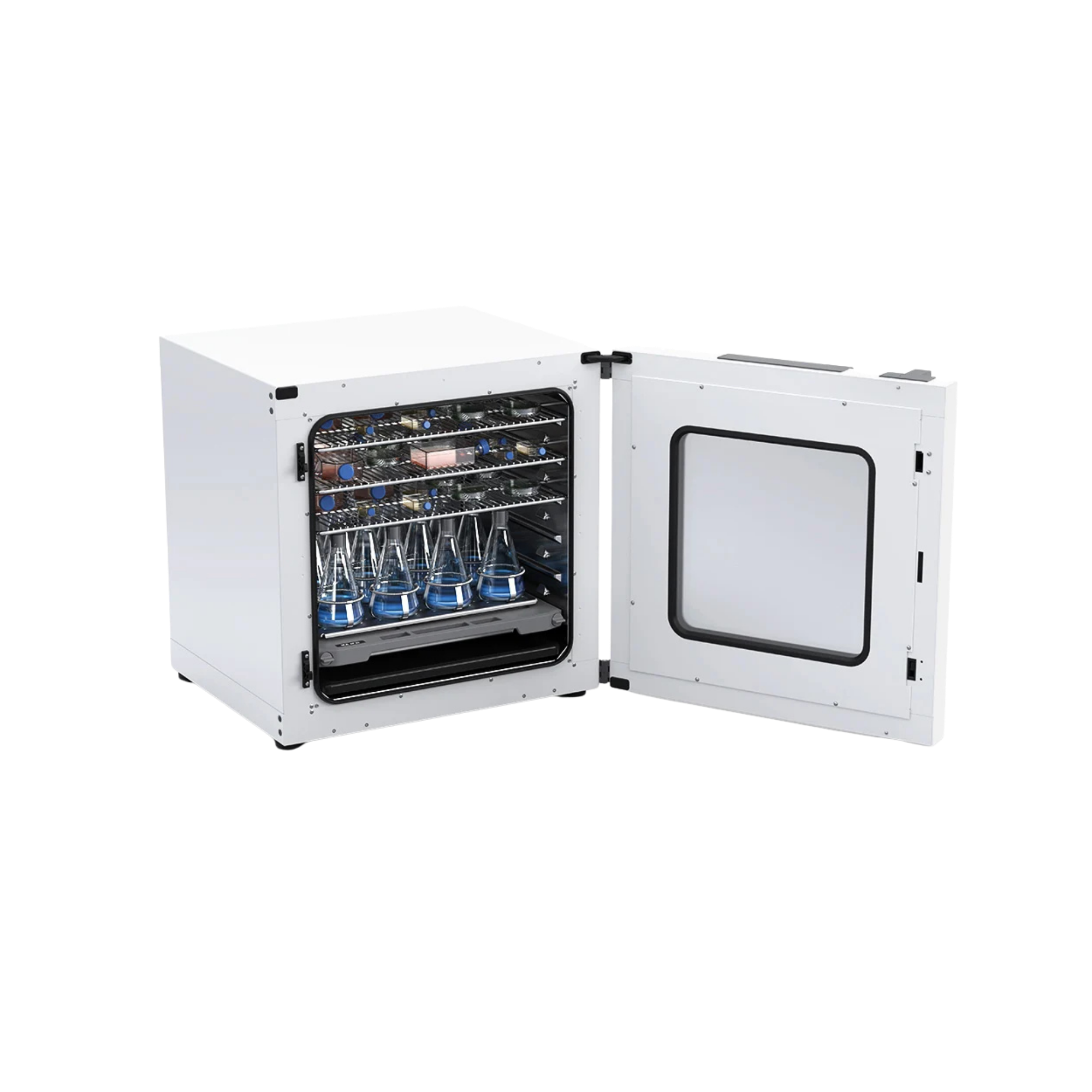 Der INC 125 FS digital (SP25) wandelt kinetische in massive strömungsmechanische Energie um. Aufgrund der weiten 25-mm-Schwingweite ist eine absolute mechanische Fixierung der Reaktionsgefäße unerlässlich, um bei 300 U/min Torsionsbrüche durch Fliehkräfte zu vermeiden. Beschaffen Sie zwingend die passgenauen Edelstahl-Halteklammern für definierte, großvolumige Erlenmeyerkolben. Für asymmetrische Gefäßgeometrien nutzen Sie die hochadhäsive STICKMAX Klebematte. Sollen Kulturen ohne Kinetik bebrütet werden, lässt sich die Plattform entnehmen und der Inkubator mit weiteren Gitterrosten (IO T 1.00) logistisch erweitern. Wenden Sie sich für die thermodynamisch korrekte Systemkonfiguration jederzeit an unseren spezialisierten Beschaffungsservice.