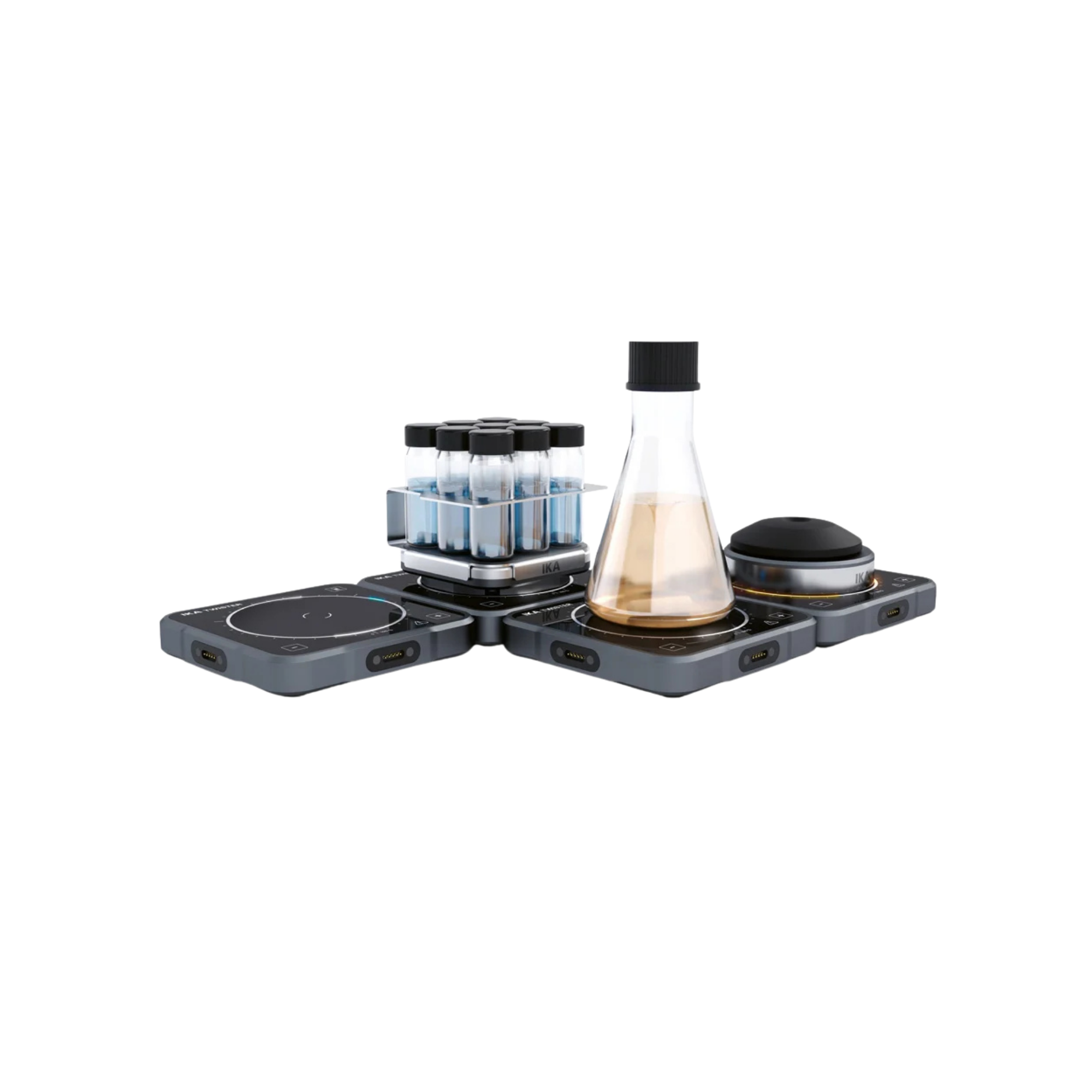 Wichtiger Hinweis: Für den Ausbau auf mehr als drei Rührstellen sind zusätzliche Verbindungskabel erforderlich. Ab einer bestimmten Anzahl von Einheiten muss die Stromversorgung über ein leistungsstärkeres Netzteil (optional erhältlich) sichergestellt werden.