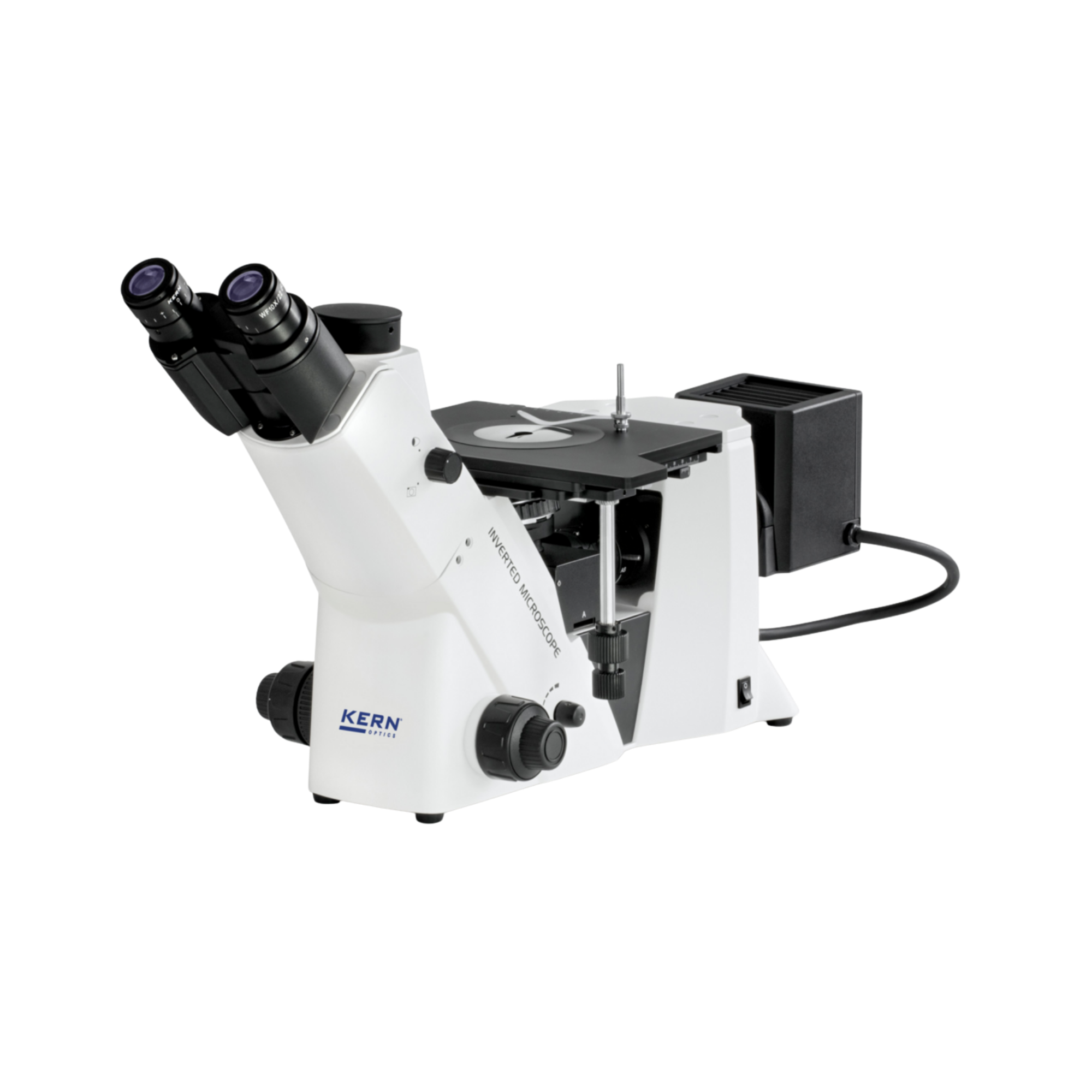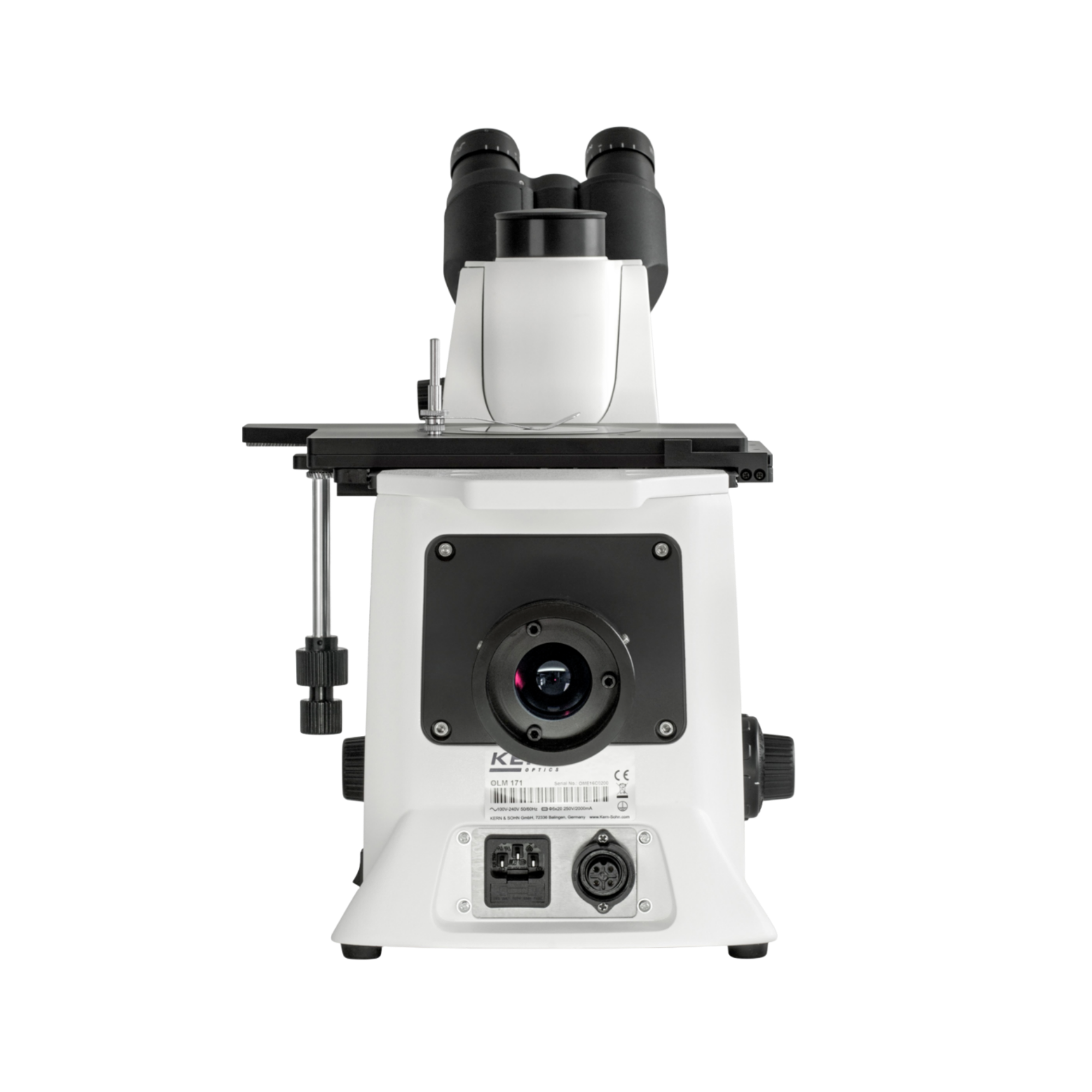 In der industriellen Fraktografie, der Gussprüfung und der metallurgischen Qualitätssicherung stoßen klassische aufrechte Mikroskope bei massiven Werkstücken sofort an mechanische Grenzen. Der fundamentale verfahrenstechnische Vorteil des KERN OLM 171 ist seine inverse (umgekehrte) Bauweise. Die Objektive und der Fokussiertrieb befinden sich physikalisch unterhalb des massiven Kreuztisches. Diese konstruktive Architektur eliminiert Höhenbeschränkungen für das Probenmaterial vollständig. Schwere Motorenbauteile, massive Stahlbrammen oder dicke Halbleiter-Wafer können direkt auf dem Tisch platziert werden. Ein weiterer entscheidender präparativer Vorteil: Bei einem Inversmikroskop muss das Werkstück nur an der zu mikroskopierenden Unterseite absolut plan geschliffen und poliert sein. Ein aufwendiges planparalleles Ausrichten der gesamten Probengeometrie, wie es bei aufrechten Systemen zwingend erforderlich ist, entfällt komplett.