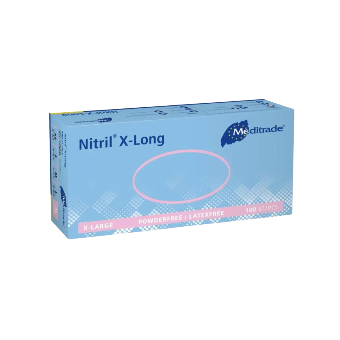 Meditrade Nitril® x-long Schutzhandschuhe (290mm, Blau, 10×100 Stk. Karton)